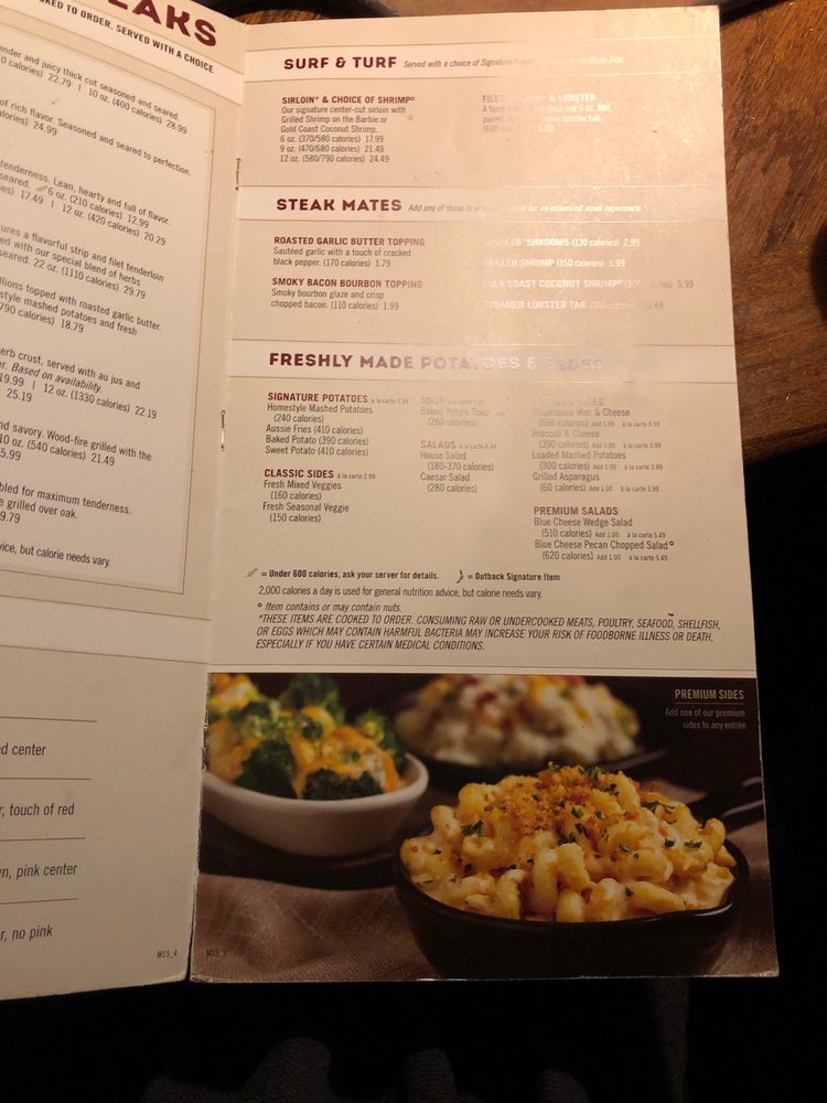 Our signature center-cut sirloin with 1/2 rack Outback Ribs. Served with two freshly made sides.